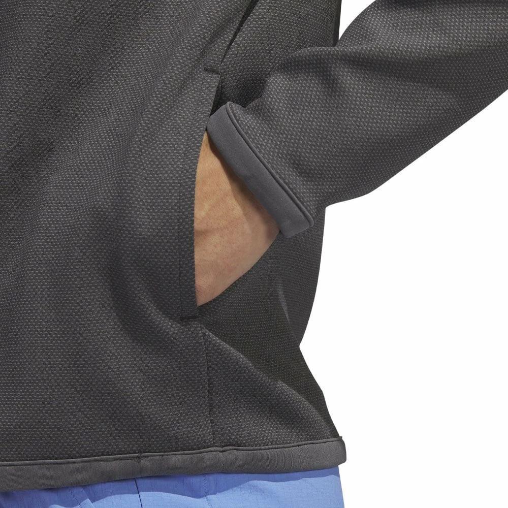The pullover is complete with a ¼ zip design for easy layering and front pockets for small valuables.