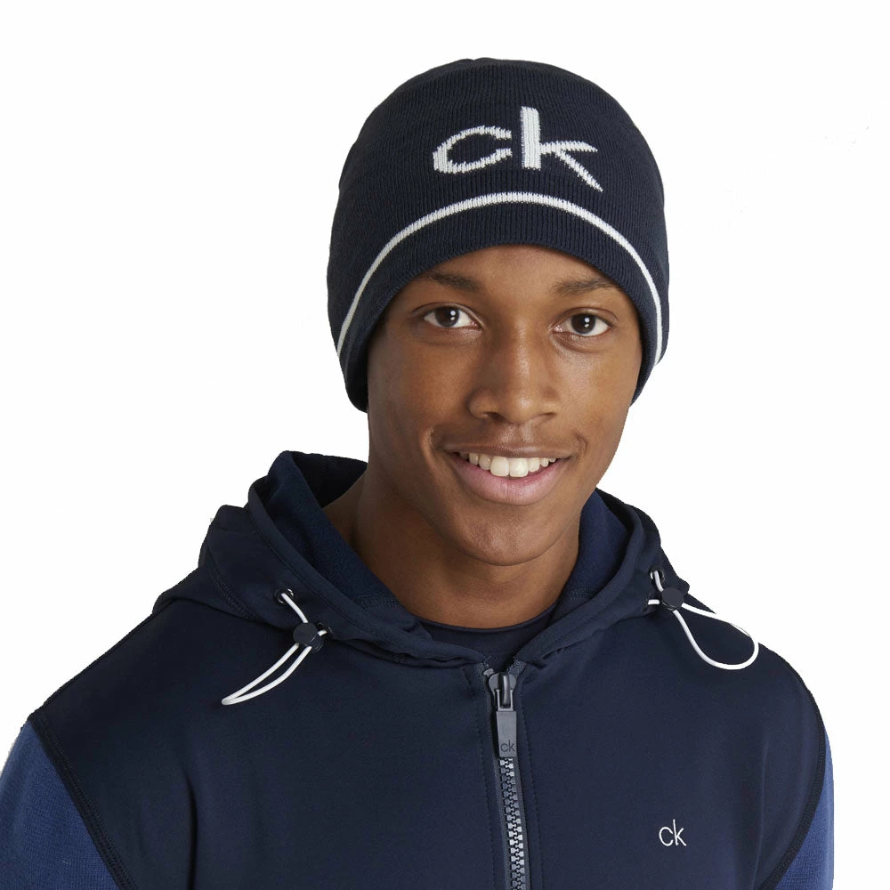 The Calvin Klein React Reversible Beanie offers two styles in one garment, where one is knitted with the classic Calvin Klein logo and stripe design, the other is fleece material with a more subtle logo.