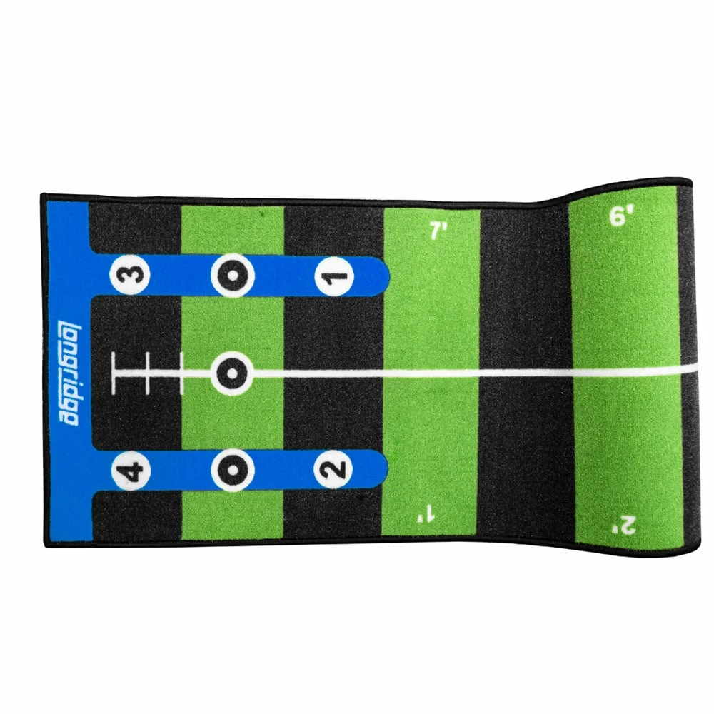 Practise your putting in the comfort of your own house, the Longeridge Pro Putting Mat helps you train your putting indoors while providing plenty of training lines to help improve your game. The mat provides markers for every distance, as well as backswing, follow through and alignment indicators. The mat has been designed so it will lay flat instantly with no need to brush the mat fibres so you can instantly get hitting, it also comes with a ramp under the map so you can create your own break.