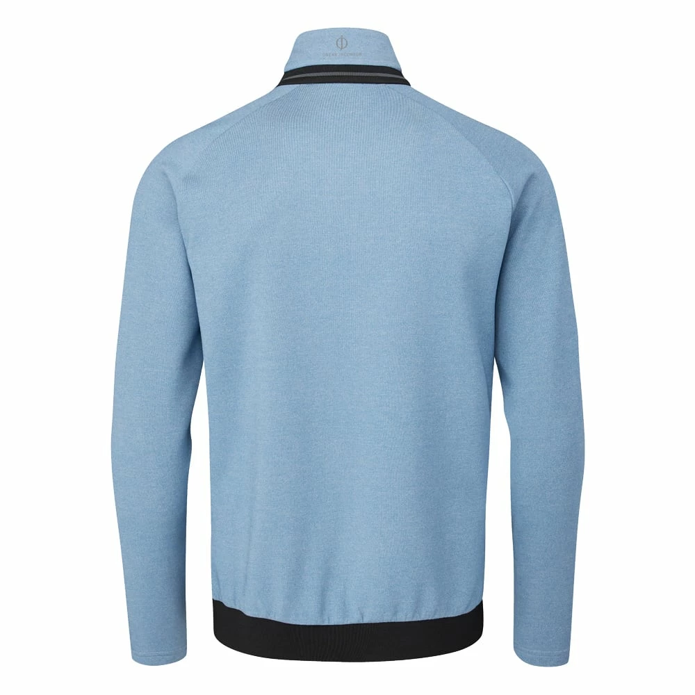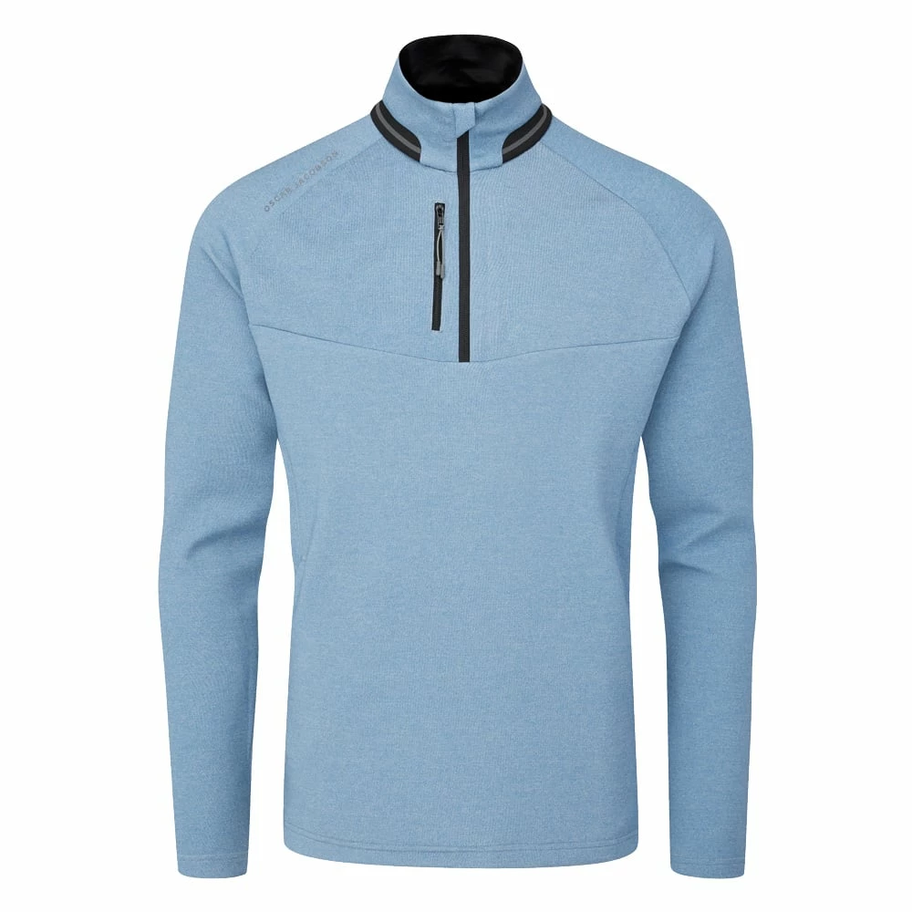 The Oscar Jacobson Thomson Zip Neck Sweater is the perfect pullover if you are looking for a stylish and distinctive look for the golf course. With a contemporary design it features a polyester blend stetch fabric that gives fantastic range of movement and excellent levels of moisture wicking so you can always feel comfortable on the course.